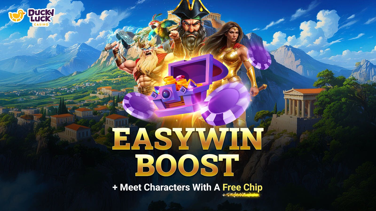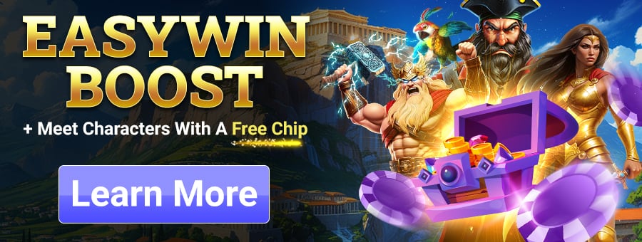 EasyWin Boost is live. Value builds quietly while you spin, and the Free Chip lets you jump in and experience the characters right away.